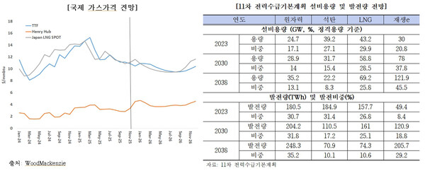 최근 12차 전력수급기본계획이 시작됐다. 지난 11차 계획에서 천연가스 발전량은 현재 수준에 비교해 과도하게 낮게 전망됐다. 2023년 설비용량 2023년대비 60% 이상 증가할 것으로 전망됐으나, 발전량은 이와 반대로 2038년에 50% 감소하는 것으로 전망됐다.
